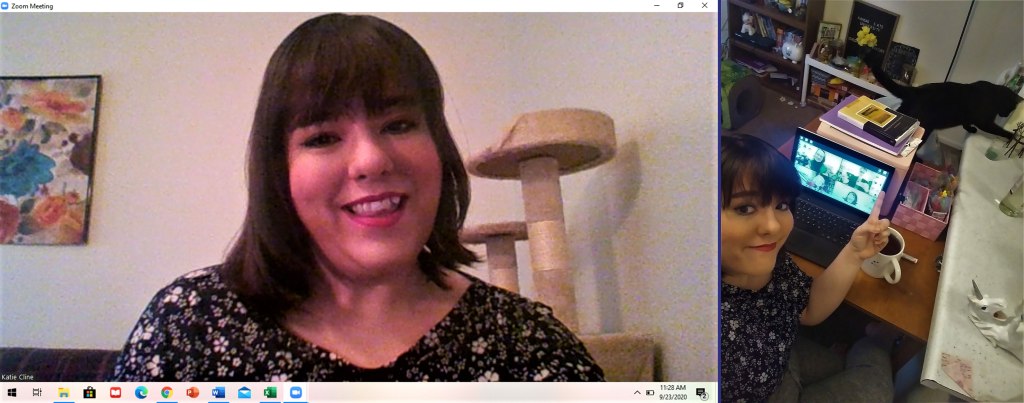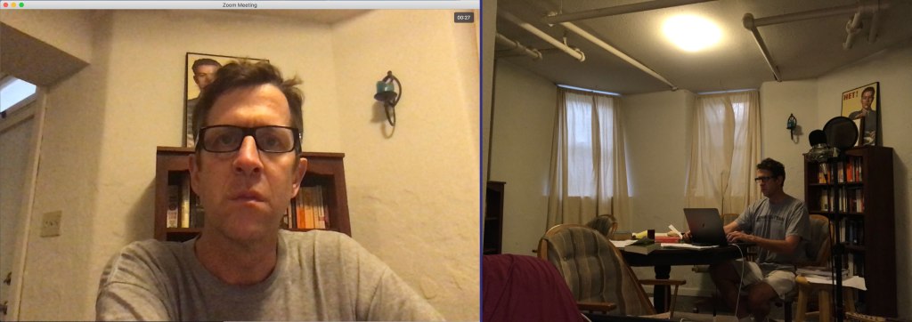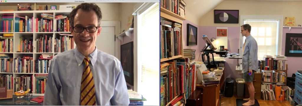 Inspired by a Tweet from Dr. Gretchen Goldman — “Just so I’m being honest,” she wrote, sharing a side-by-side photo of herself on camera and the space she’s speaking from — we offer some of our own “Zoom vs. Reality” moments from K-State English as we continue to navigate our current COVID-19 realities.