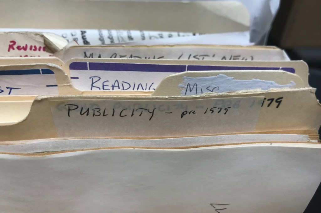 Object: File folder titled “Publicity — Pre 1979.”