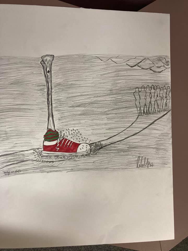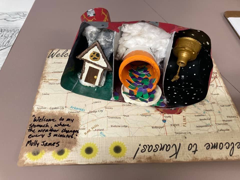 Even though all the students excel at writing, their first big creative assignment was to design and create their own visual art project that represented their relationship to some part of their body (or their whole body). I wanted everyone to try a project that was a bit outside their usual assignments so that even the nature of the creativity invited the productive discomfort that often accompanies learning and growth.