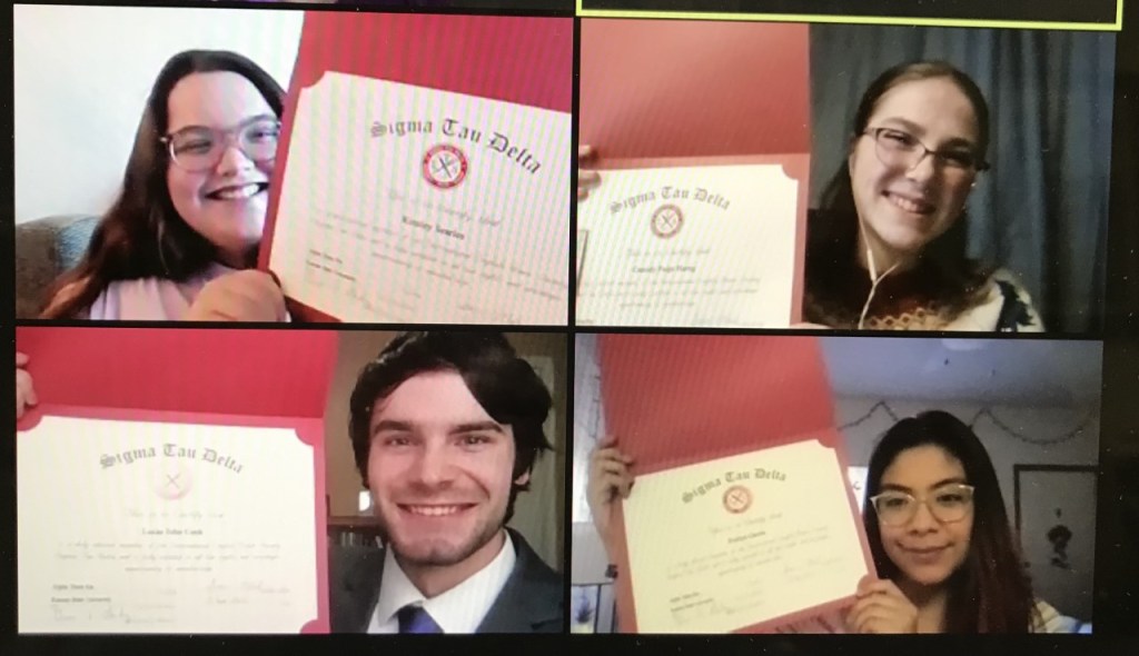 Option 12: Lucas Cook (BA ’23), Evelyn Garcia (BA ’23), Cassidy Hartig (BA ’24), and Kinsley Searles (BA ’22) are inducted into our chapter of Sigma Tau Delta!