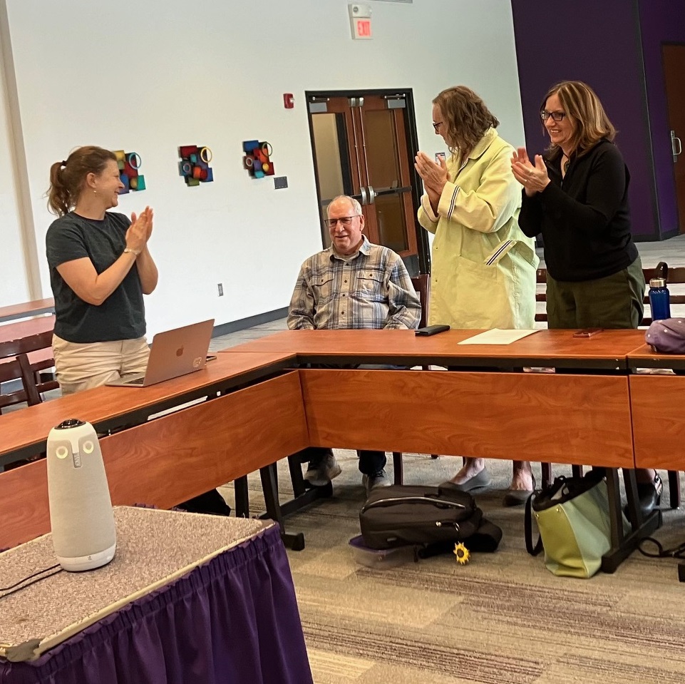 On Wednesday May 1, before turning to our agenda for the last department meeting of the academic year, we celebrated the contributions of Roger Friedmann who retires this May after 37 years of service to Kansas State.