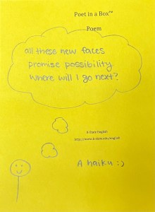 Need some inspiration for your poem request? Here are three poems from last year’s Open House that our poets shared in response to submitted prompts: