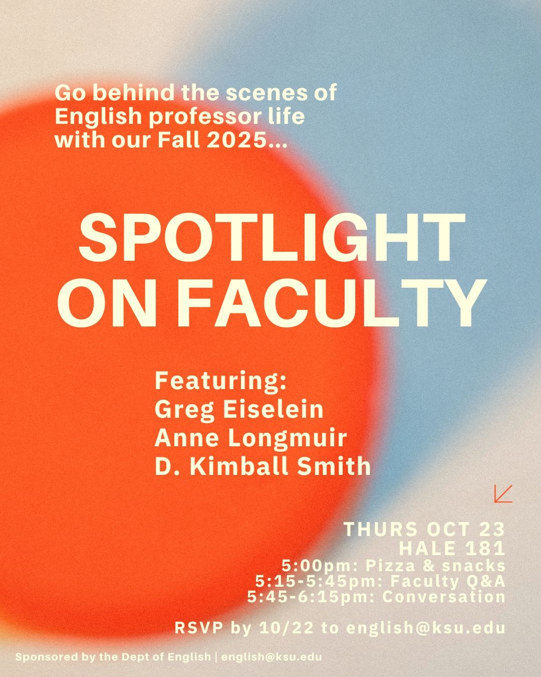 On Thursday, October 23, 2025, students and faculty gathered in Hale Library to get a behind-the-scenes look at three English professors’ lives. The inaugural event, “Spotlight on Faculty,” featured professors Greg Eiselein, Anne Longmuir, and D. Kimball Smith.