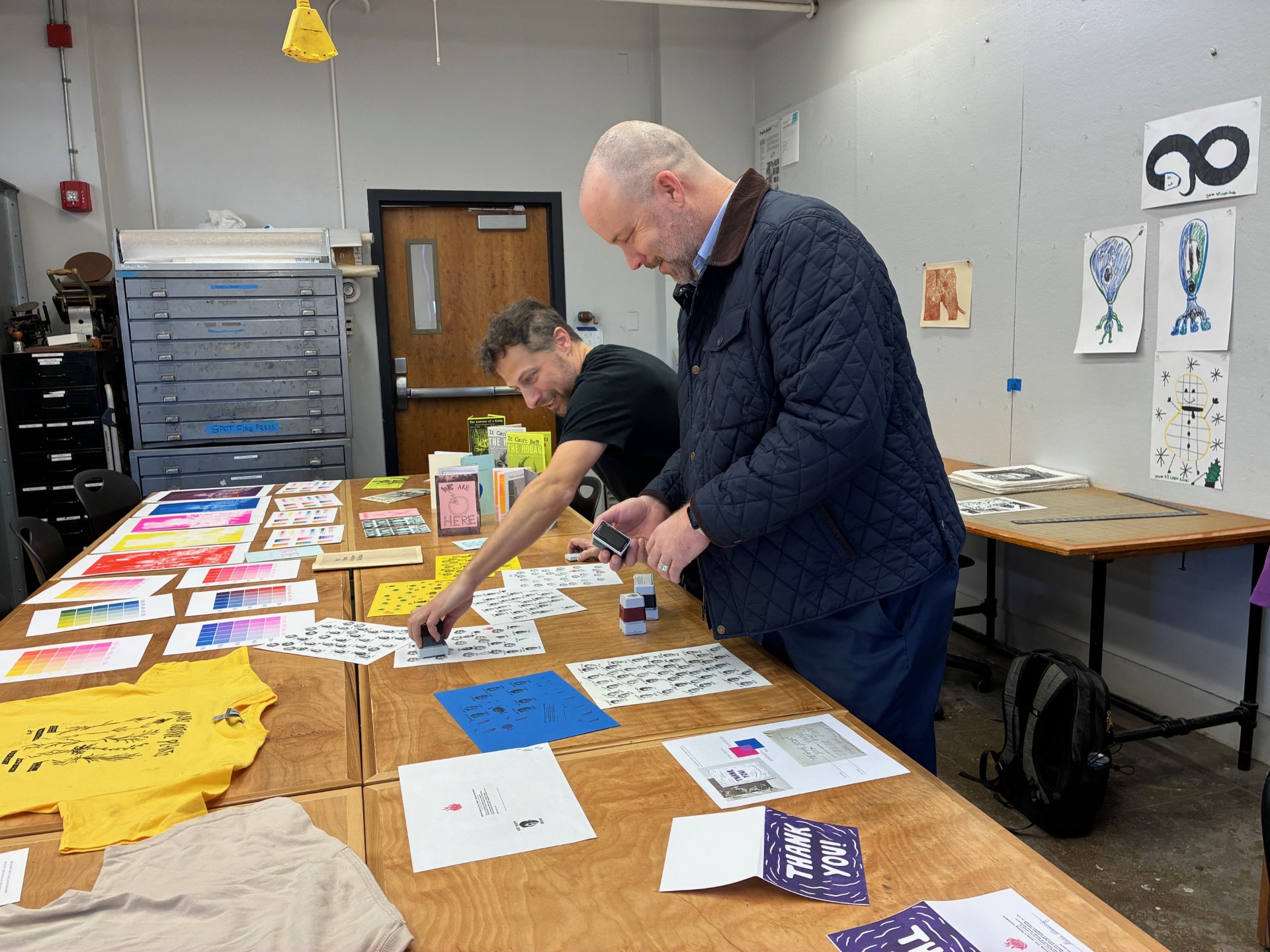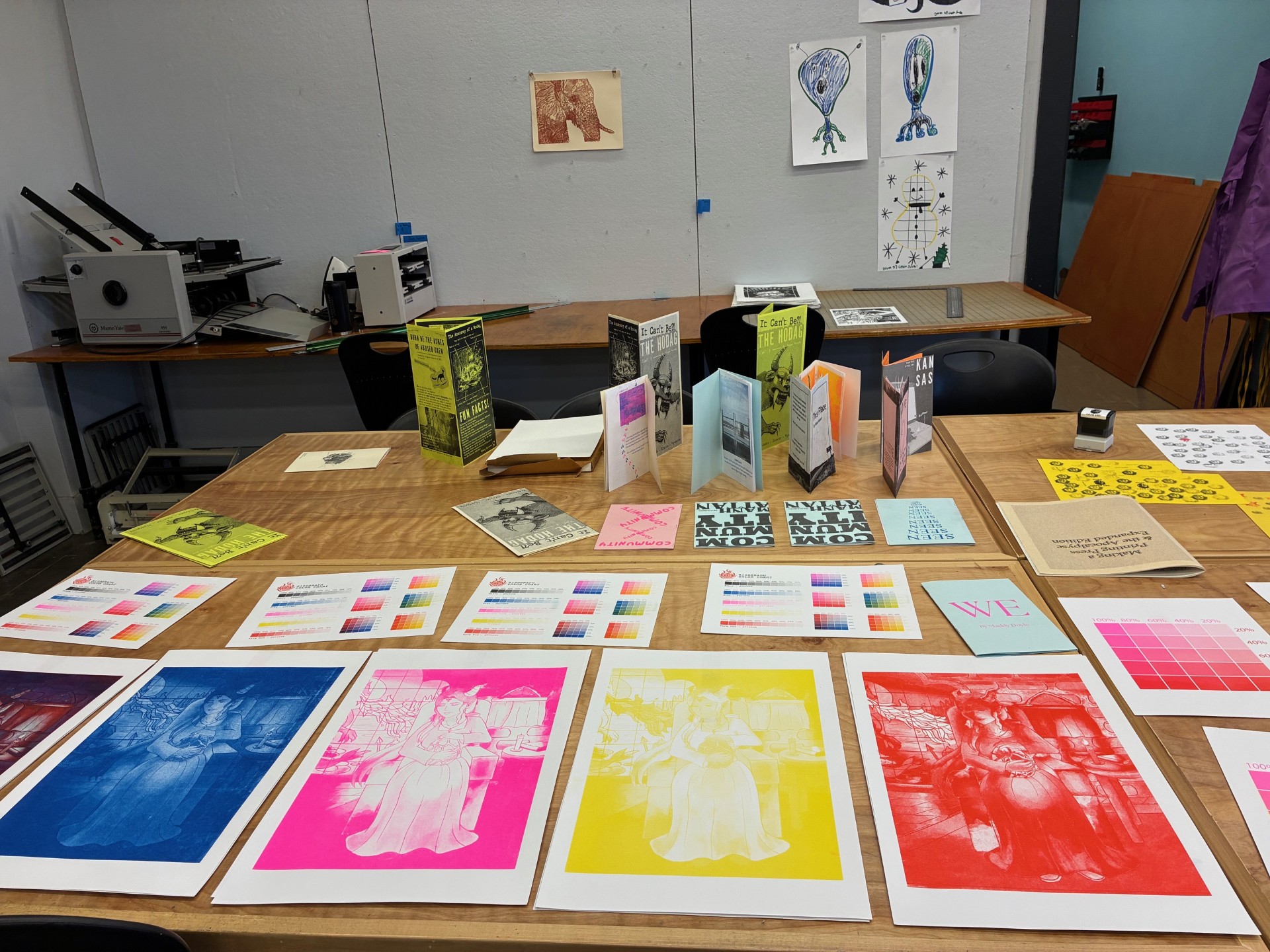 We saw tables filled with student-produced zines and prints as well as designs for upcoming commissions for community partners.