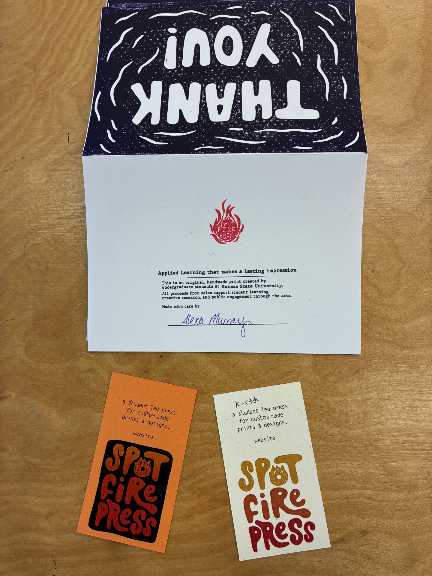 As the back of the card explains, Spot Fire Press offers “Applied Learning that makes a lasting impression.”