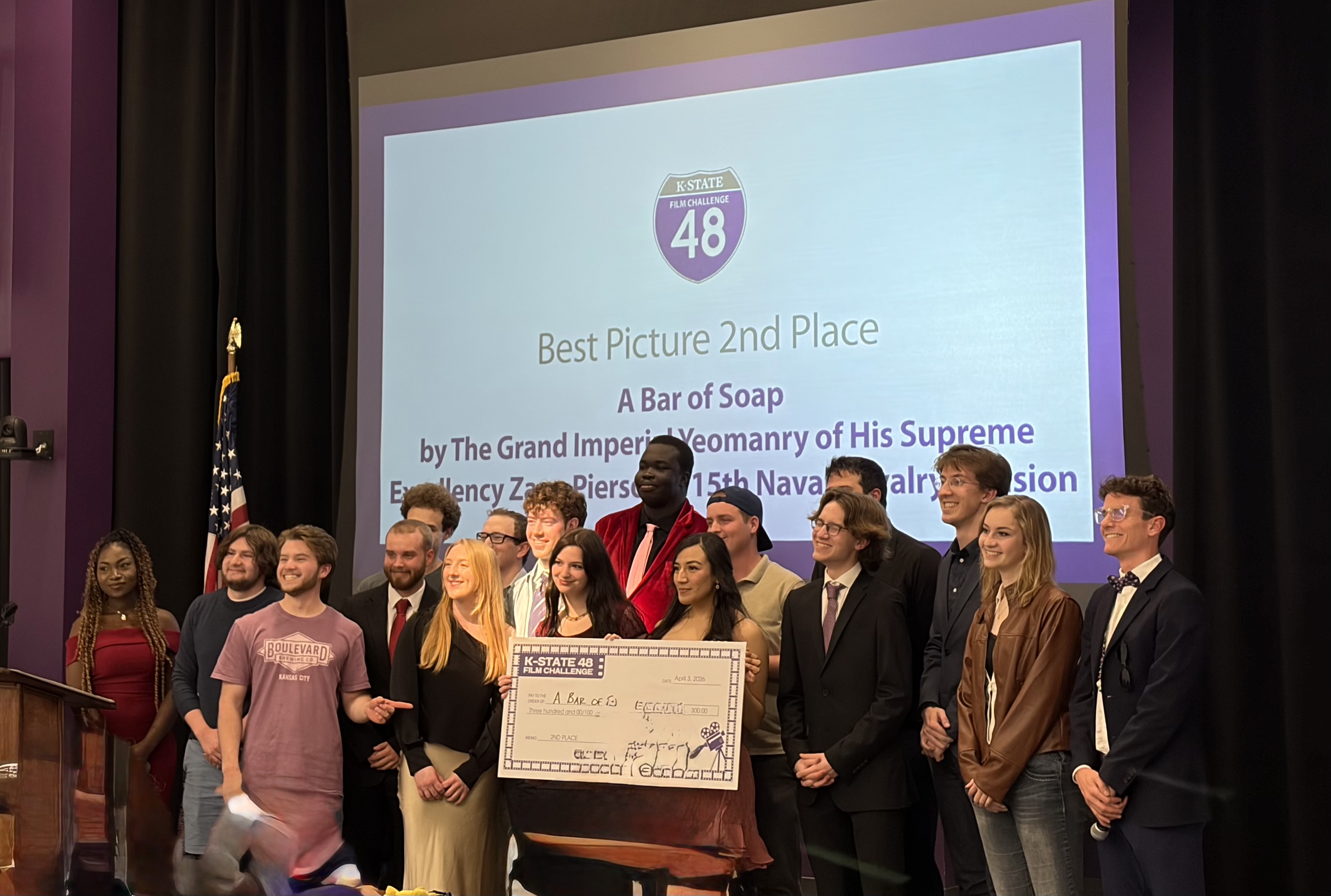 The film challenge and premiere were organized by the 2026 K-State 48 Committee, and was enthusiastically MC’d by committee member Mary Adeyemo (MA ’26, English), and Dawson Wagner (MS ’26, Mass Communications).