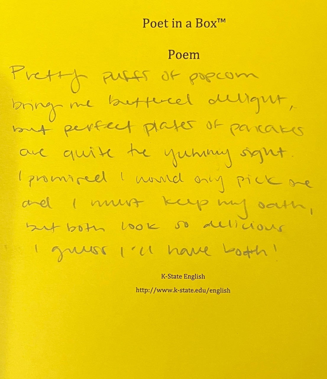 Poem prompt: “Popcorn and pancakes”