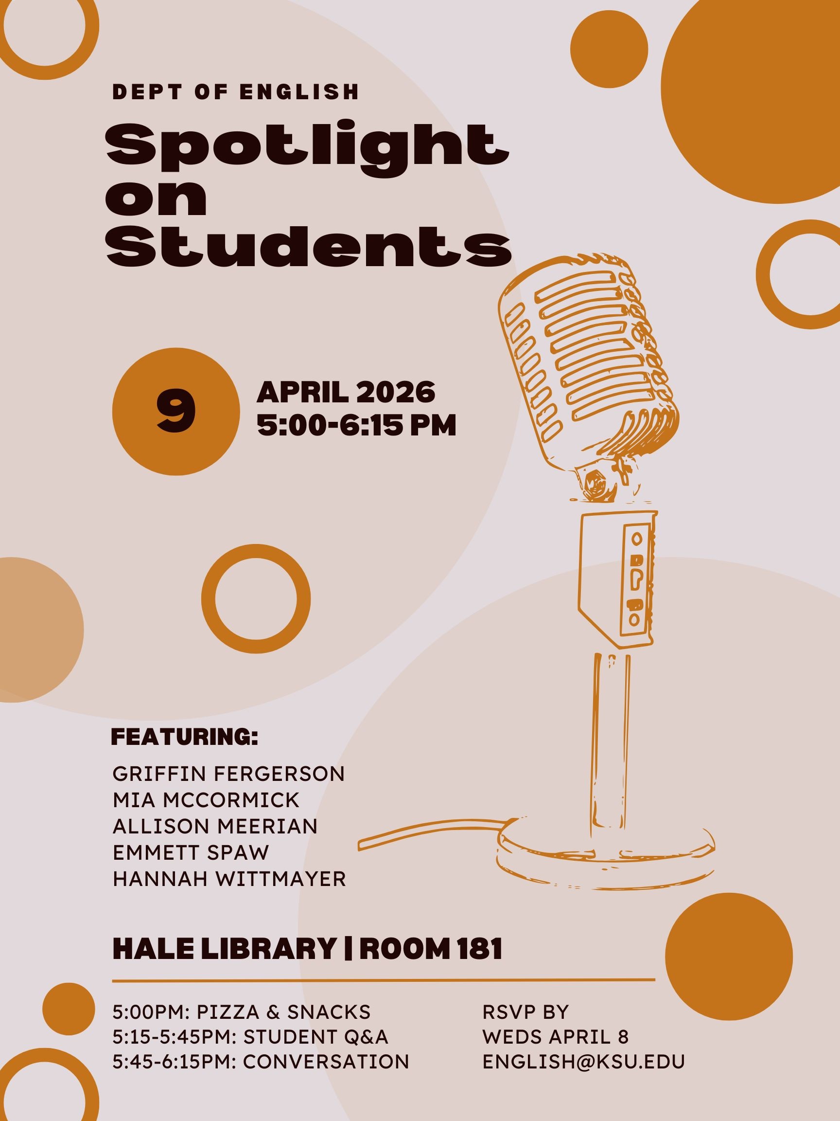 On Thursday, April 9, 2026, the English community had an opportunity to come together, enjoy snacks, and hear about the many activities and accomplishments of some outstanding students affiliated with the English Department.